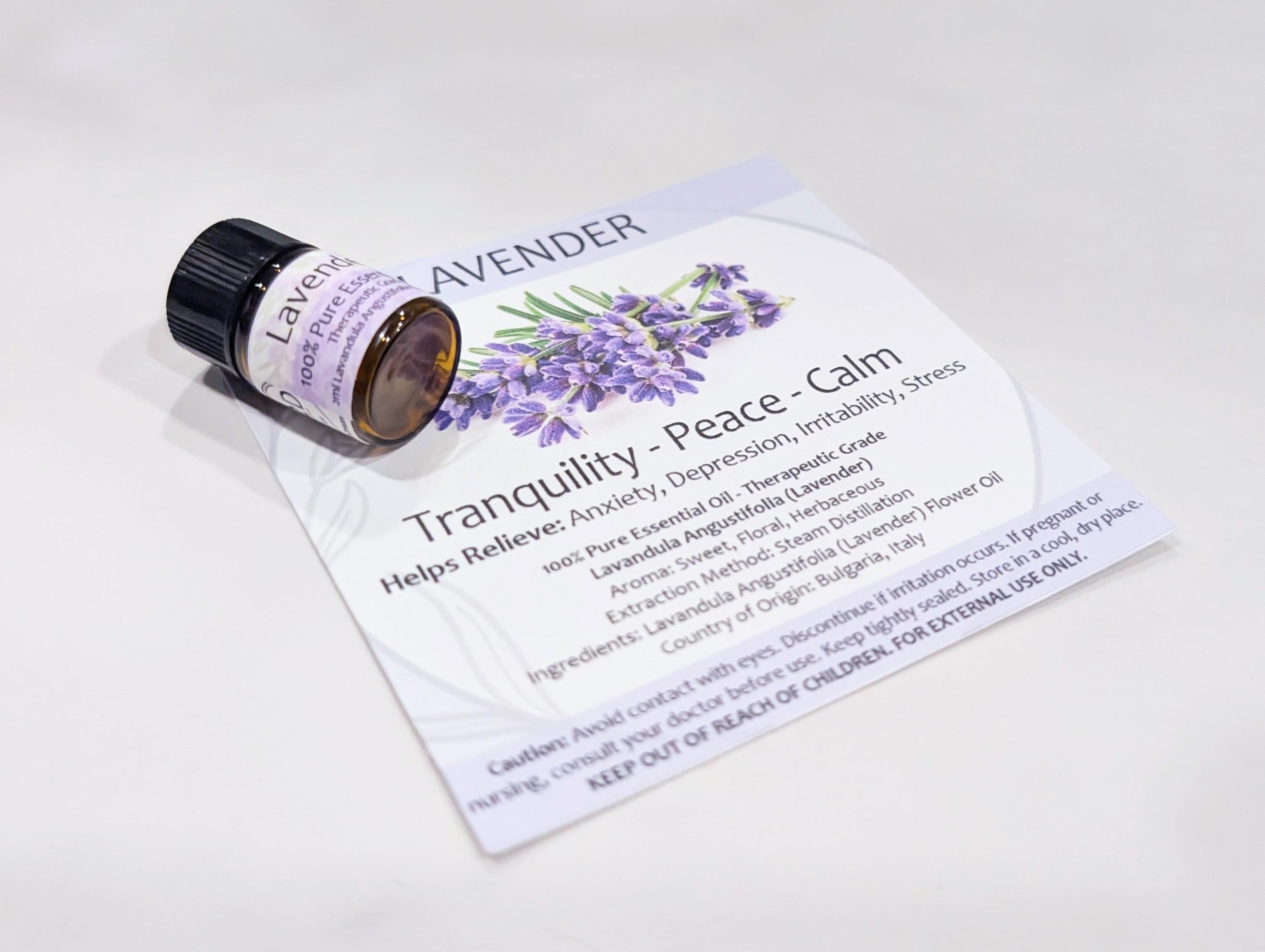 Each oil sample comes in a 2 ml amber glass bottle with a secure cap, labeled and ready for gifting or personal use.