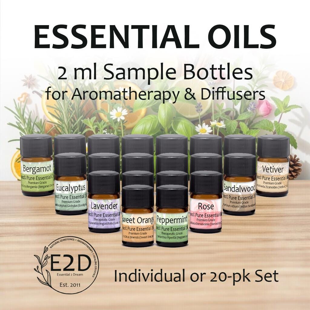 Each 2 ml sample bottle contains pure essential oil. Perfect for trying new aromas, refilling small diffusers, or carrying with you on the go.
