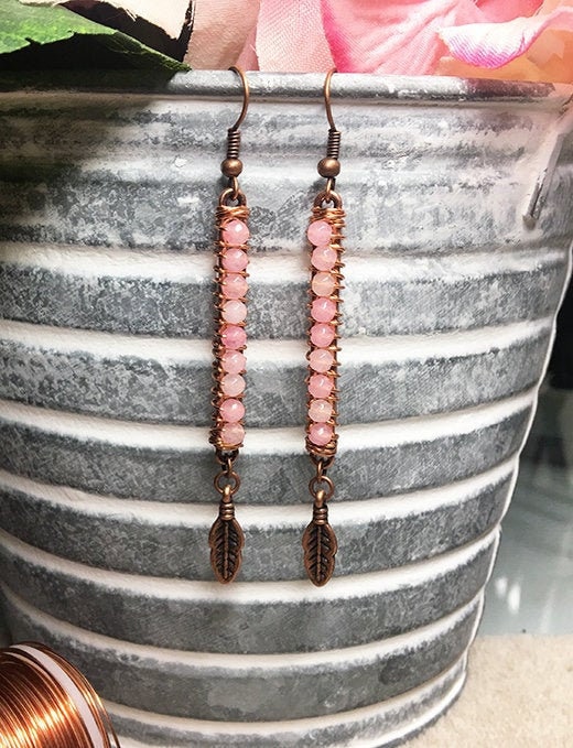 I love these earrings! The are lightweight and gorgeous!!!! The copper compliments the pink stones.
