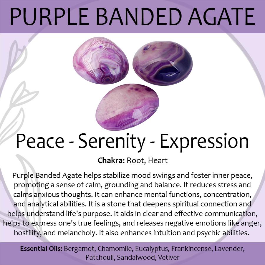 Purple agate is known for enhancing mental focus, stabilizing emotions, and encouraging inner harmony.