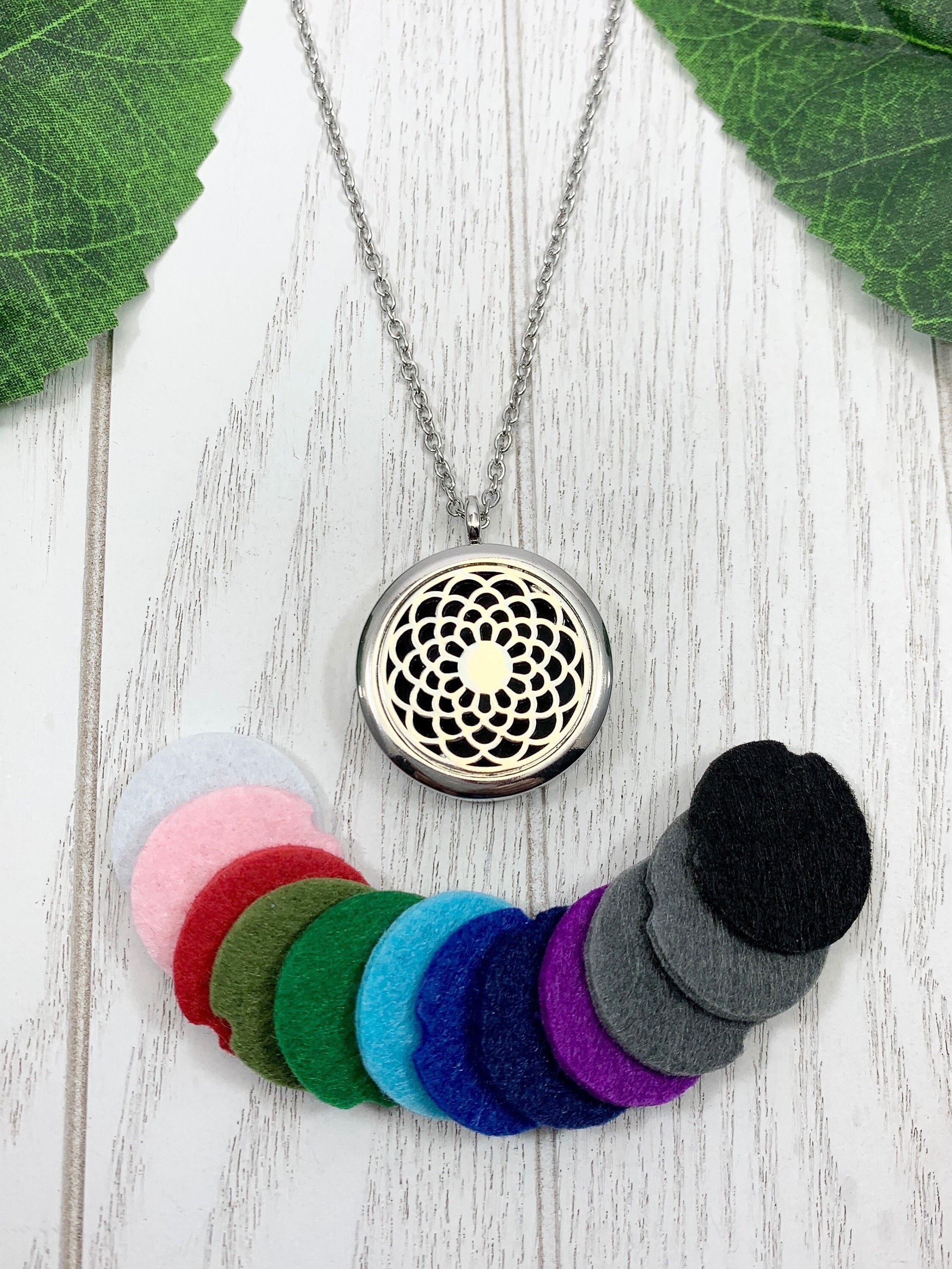 Diffuser System: Soft felt pad inside locket holds essential oil.