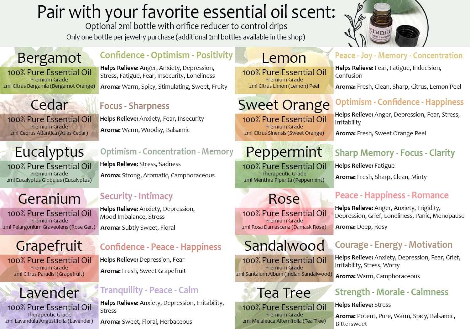 Optionally add a 2 ml dropper bottle of 100% pure essential oil. Apply 1β2 drops to lava beads (do not oversaturate).