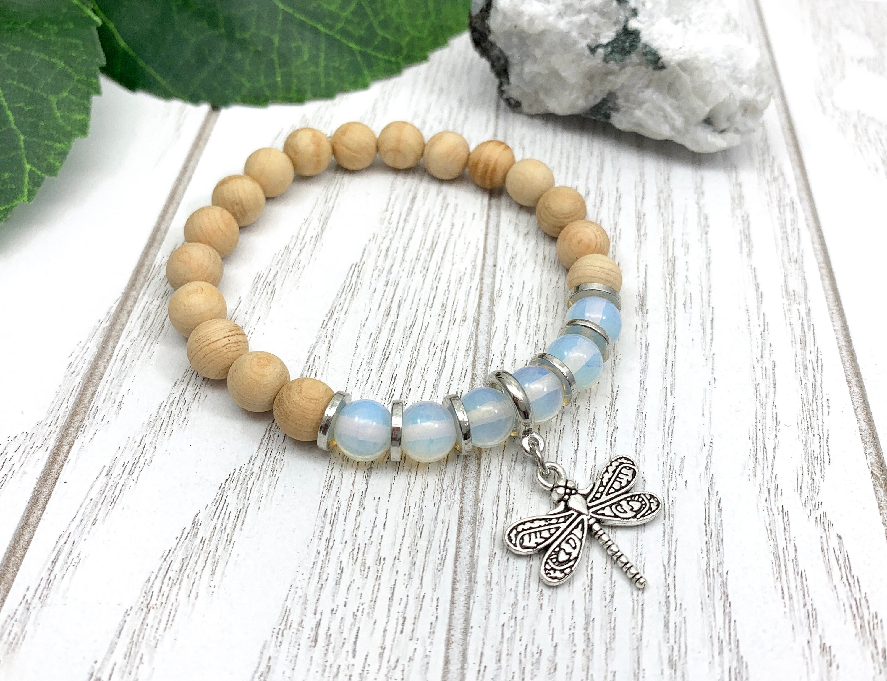 Moonstone is a great tranquility stone that most commonly used for cleansing, detox, and relaxation. This calming bracelet is great for stress relief and anxiety relief. This moonstone opal jewelry bracelet set makes the perfect diffuser gift for any crystal healing enthusiast, or gemstone lover.