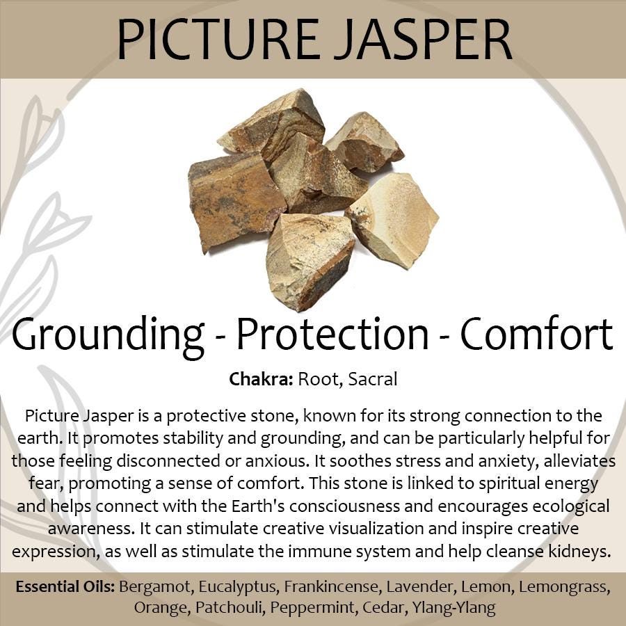Picture jasper is known for its soothing, stabilizing energy, helping to calm the mind and anchor your spirit.