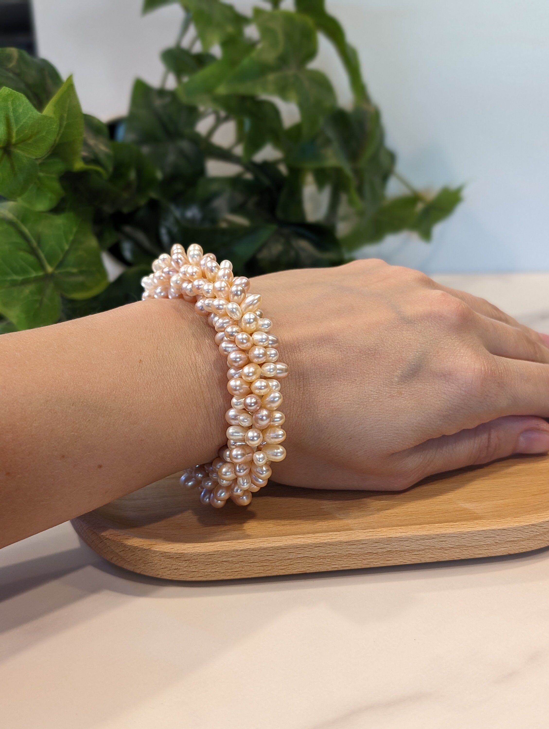 Symbolic Serenity: The light champagne tone beads for calm, grace and quiet luxury.