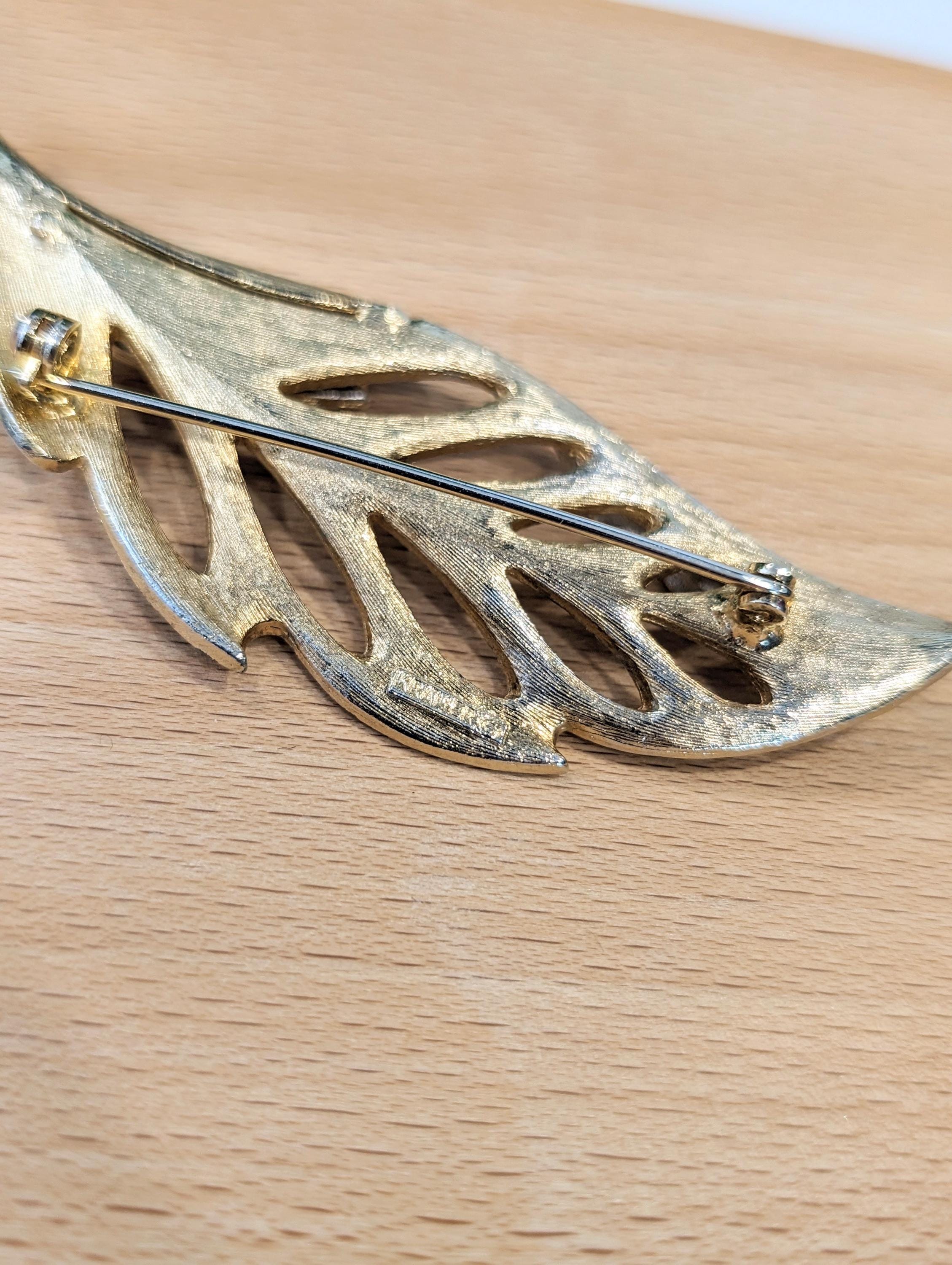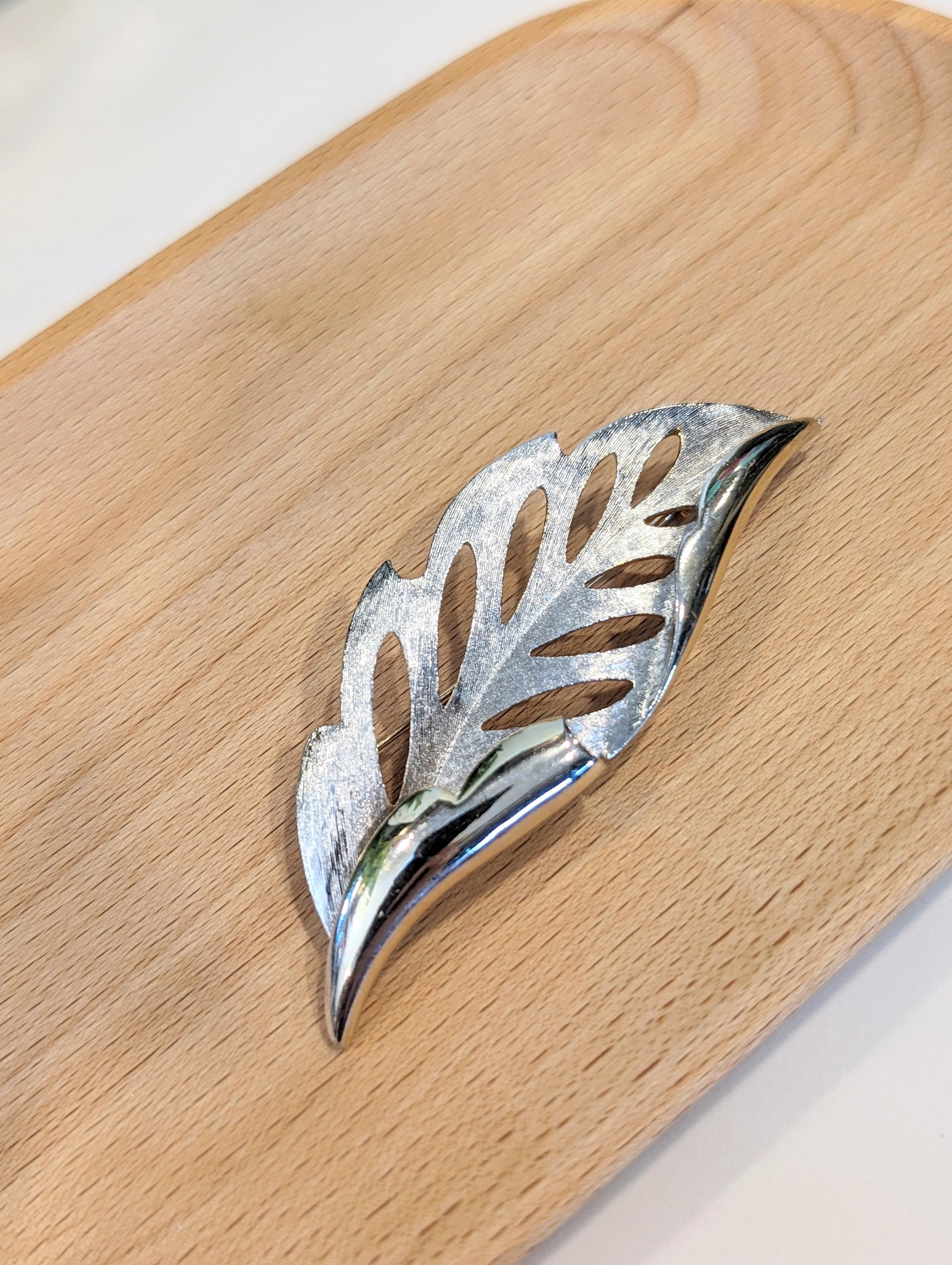 This Vintage 1960s Kramer Leaf Brooch features a two-tone silver and gold autumn leaf design. Sculpted with textured veins and layered depth, perfect for adding seasonal sophistication to coats, scarves, or sweaters. Handpicked in pristine vintage condition.