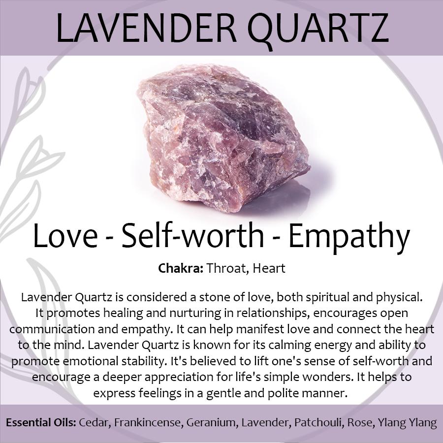 Calm & Healing: Lavender quartzite (a soothing quartz variety) encourages emotional healing, self-love, inner peace, and gentle harmony. Ideal for anxiety relief, meditation, or heart-centered energy.