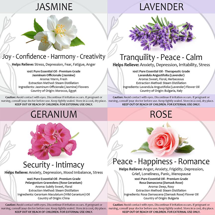 Includes all 4 floral scents: Jasmine, geranium, lavender and rose