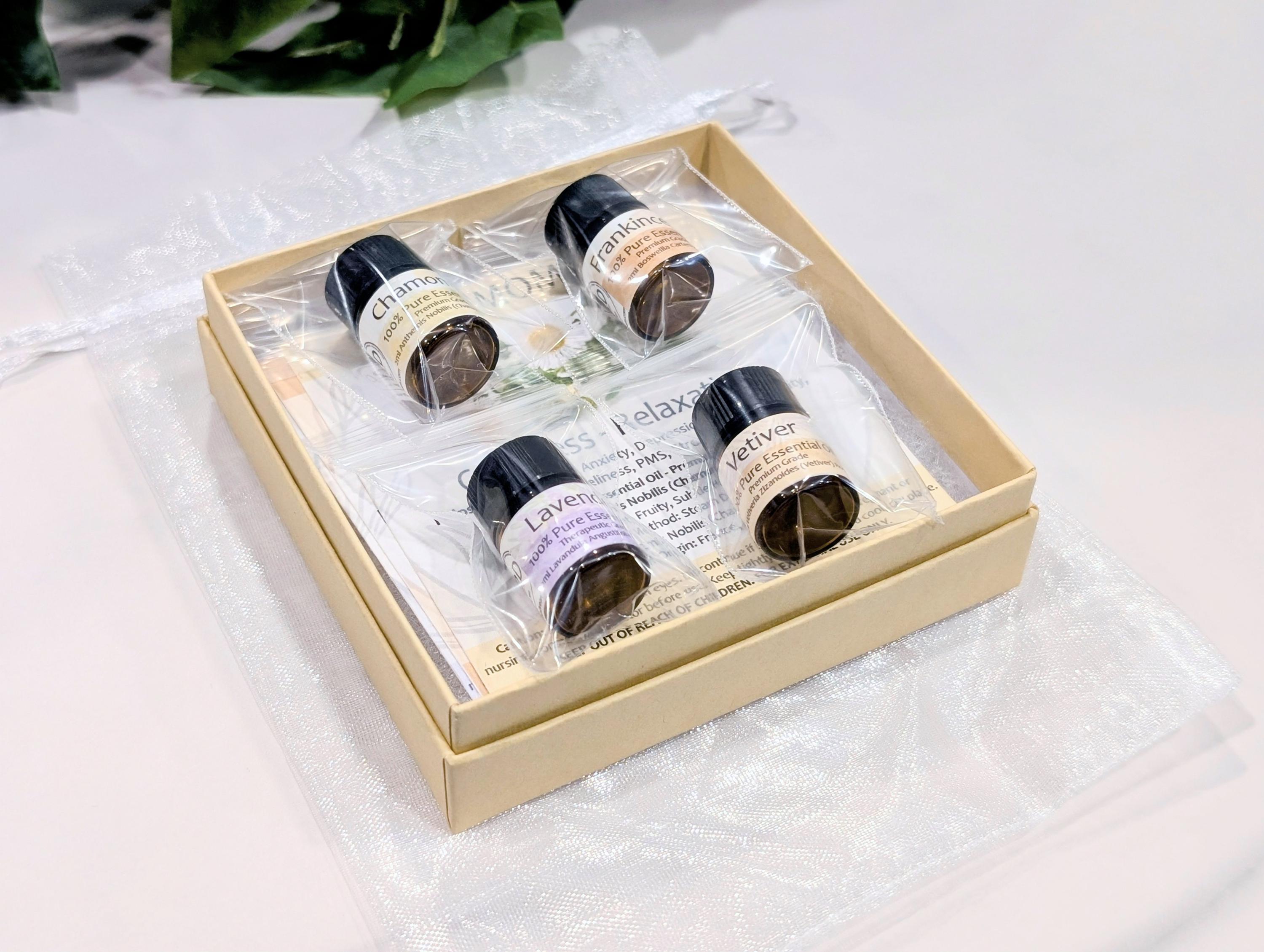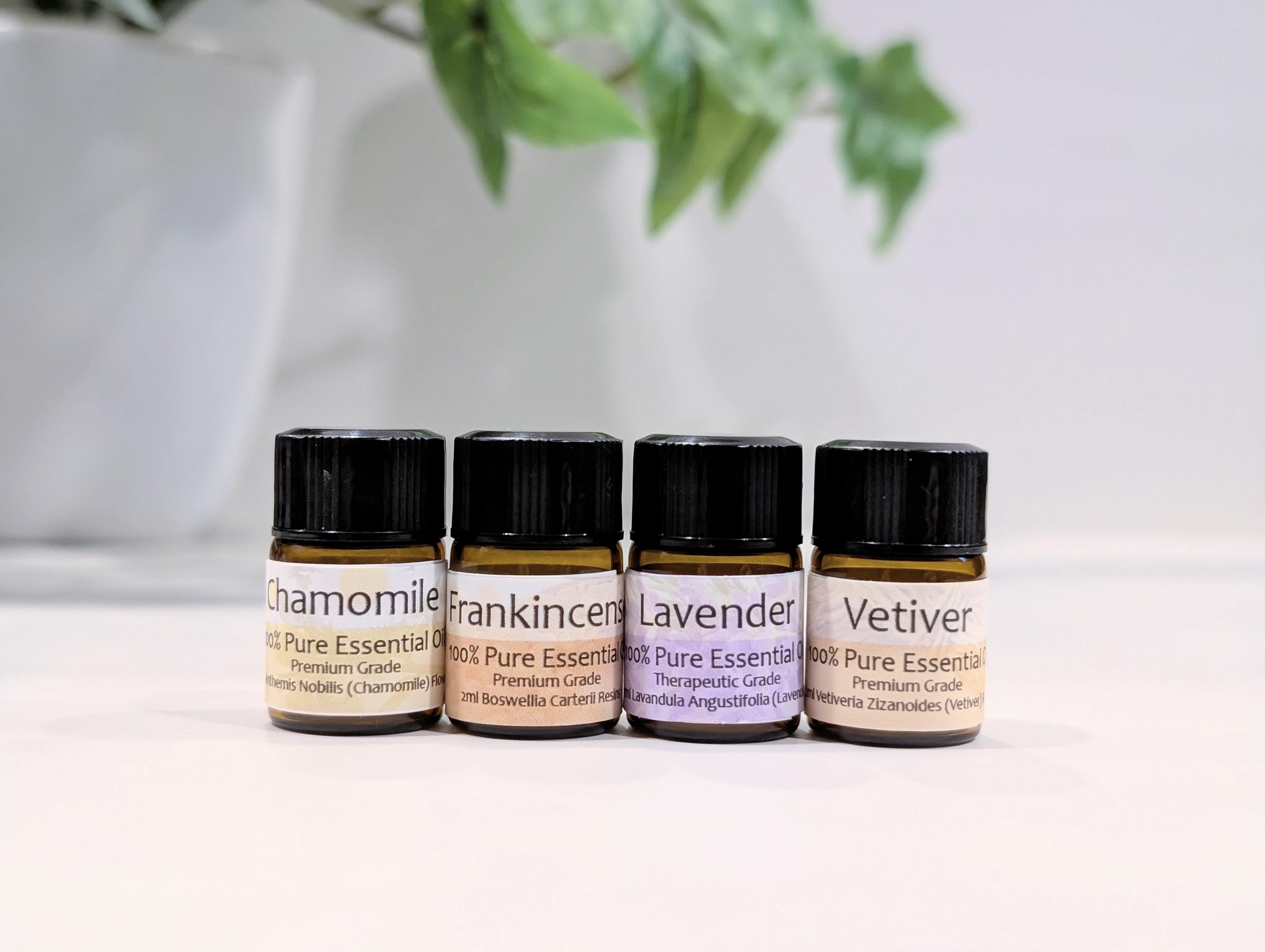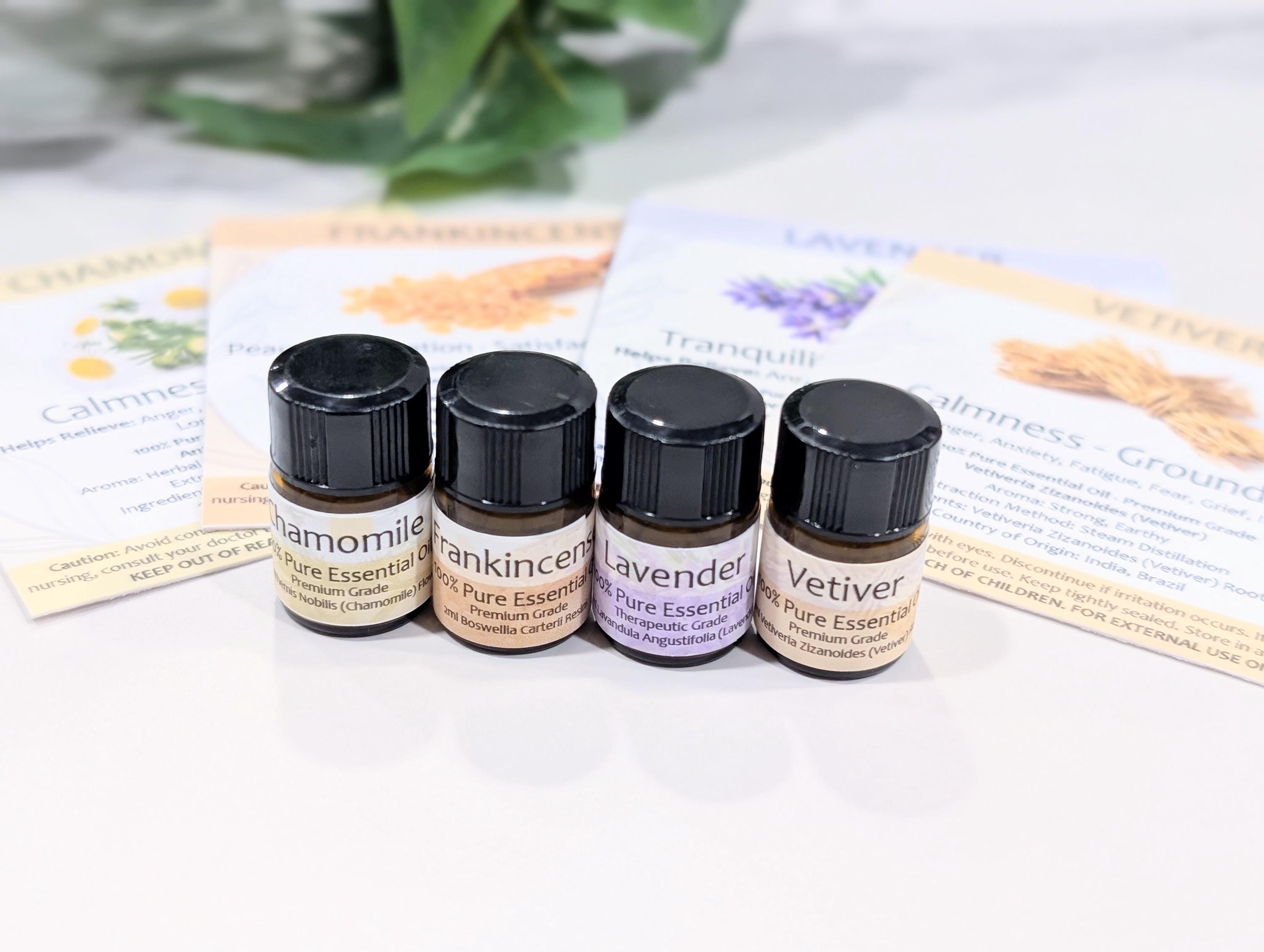Includes all 4 calming scents: Chamomile, frankincense, lavender and vetiver