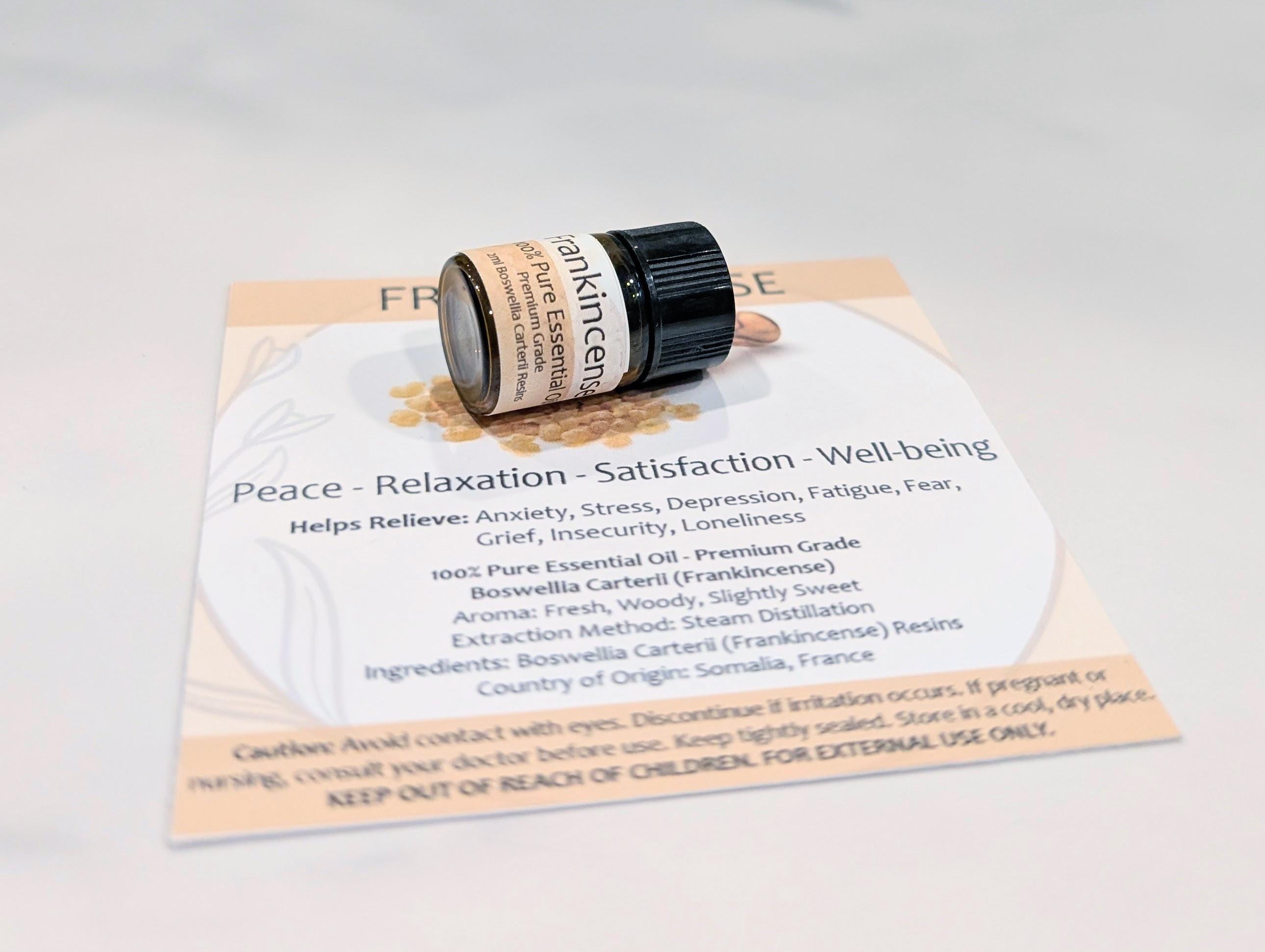 Each oil sample comes in a 2 ml amber glass bottle with a secure cap, labeled and ready for gifting or personal use.