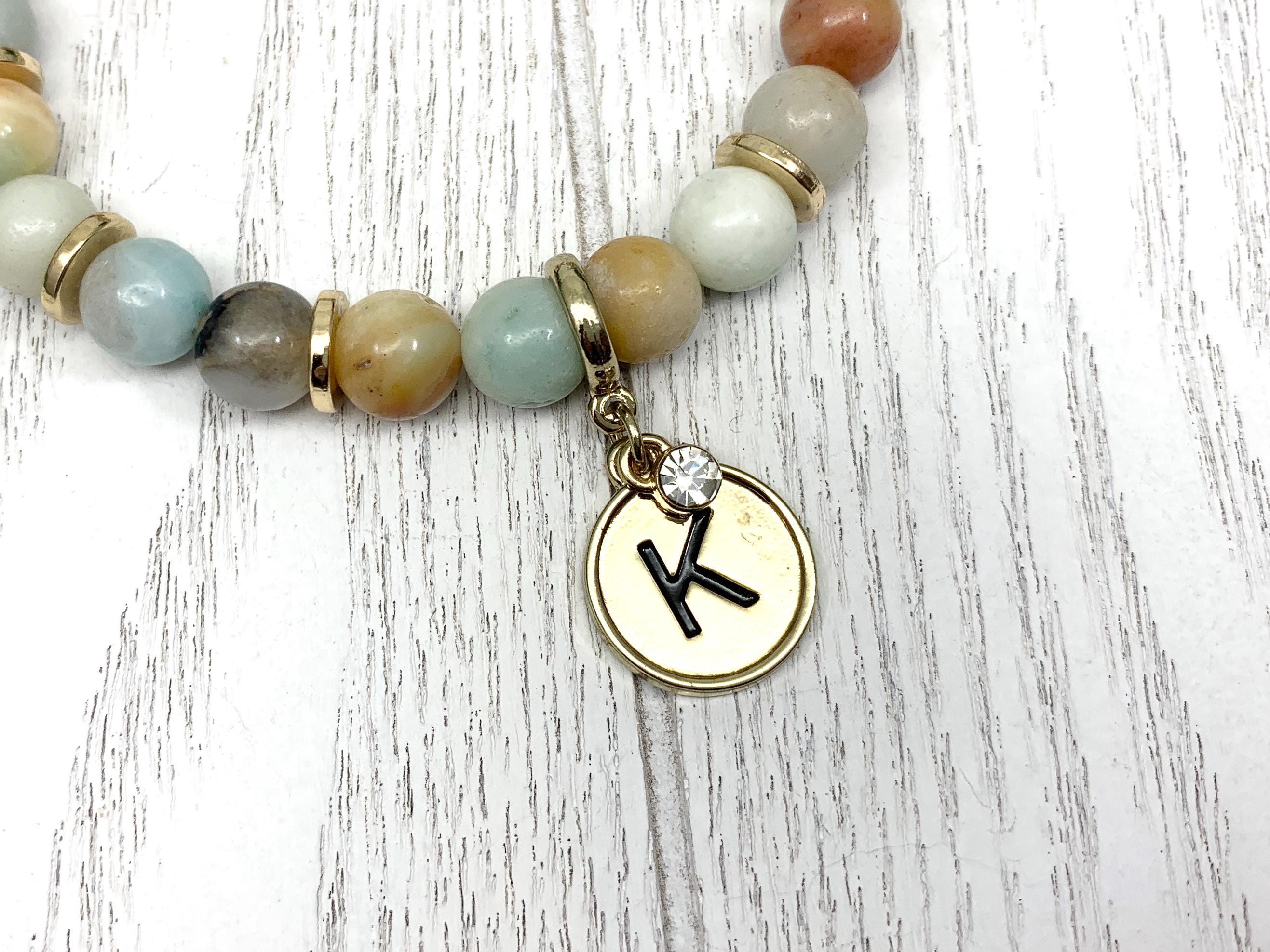 Each initial charm bracelet is handmade and built to order using elastic fiber threading for durability and comfort.