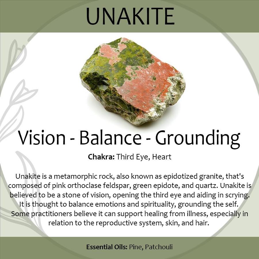 Healing Harmony: Unakite blends pink feldspar and green epidote that supports emotional healing, self-love, and gentle release.