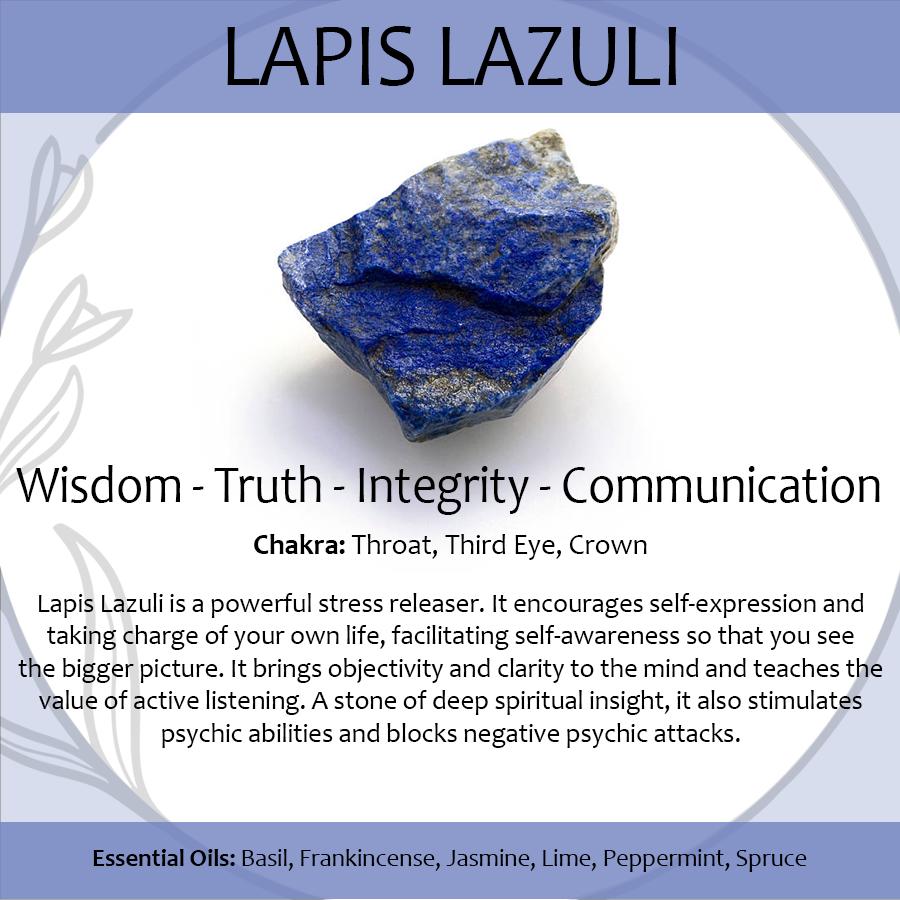 Wisdom & Truth: Lapis lazuli is celebrated for its deep-blue hue and stone of inner truth, self-expression and clarity.