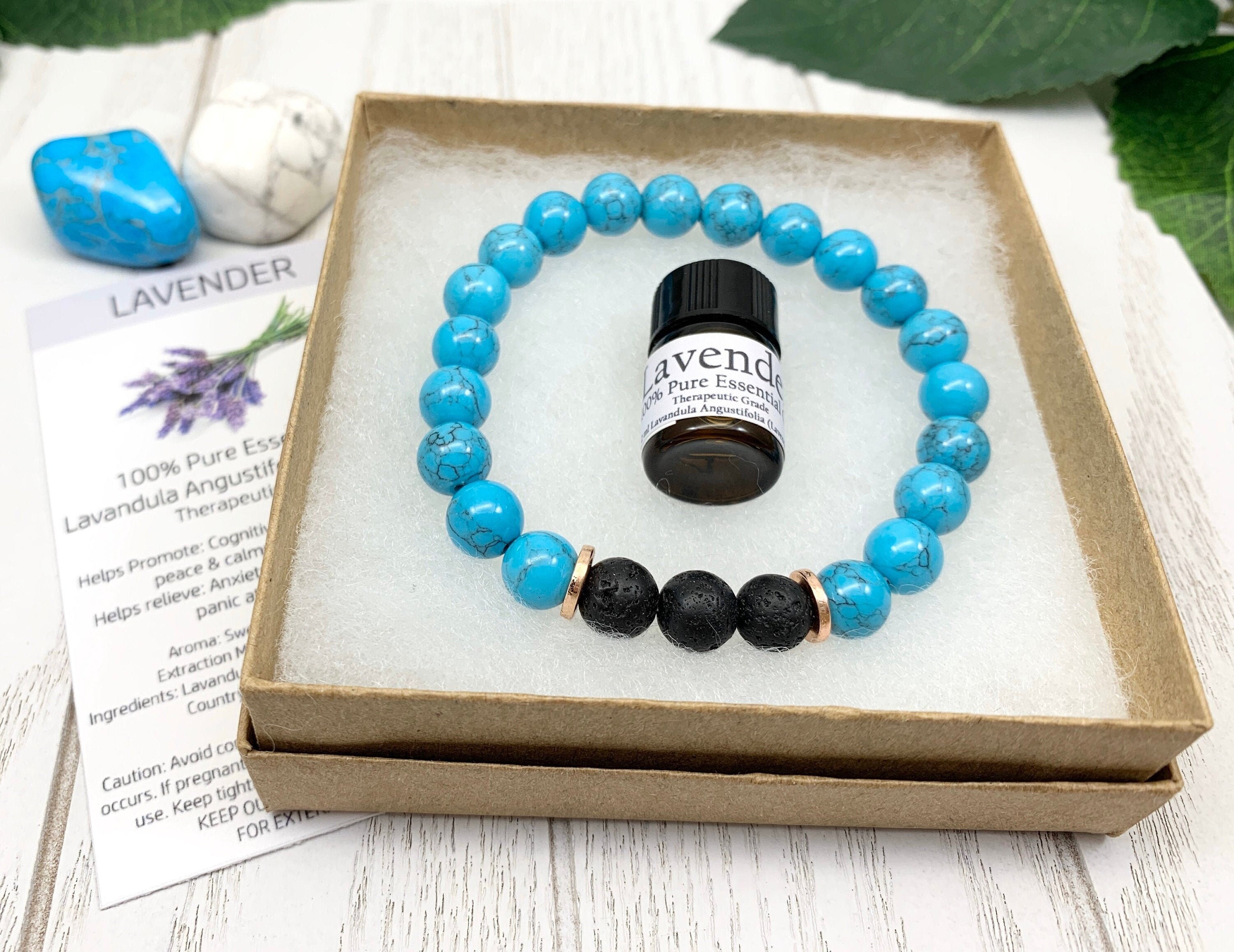 This Turquoise Lava Diffuser Bracelet features polished turquoise beads paired with porous lava stones. Crafted to remind you of tranquility, emotional balance and all-day aromatherapy.