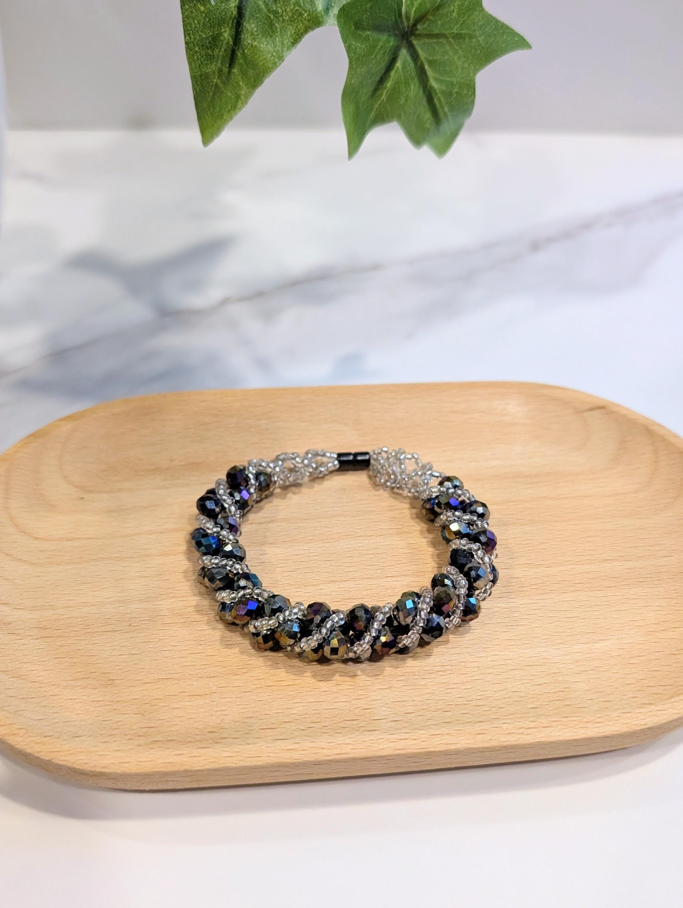This Rainbow Aura Russian Spiral Bracelet weaves faceted iridescent crystalline glass seed beads into a hypnotic spiral design. Your wearable burst of color-shifting magic for everyday joy and subtle glamour. Hand-strung on strong elastic in my Texas studio.