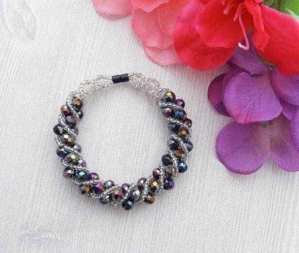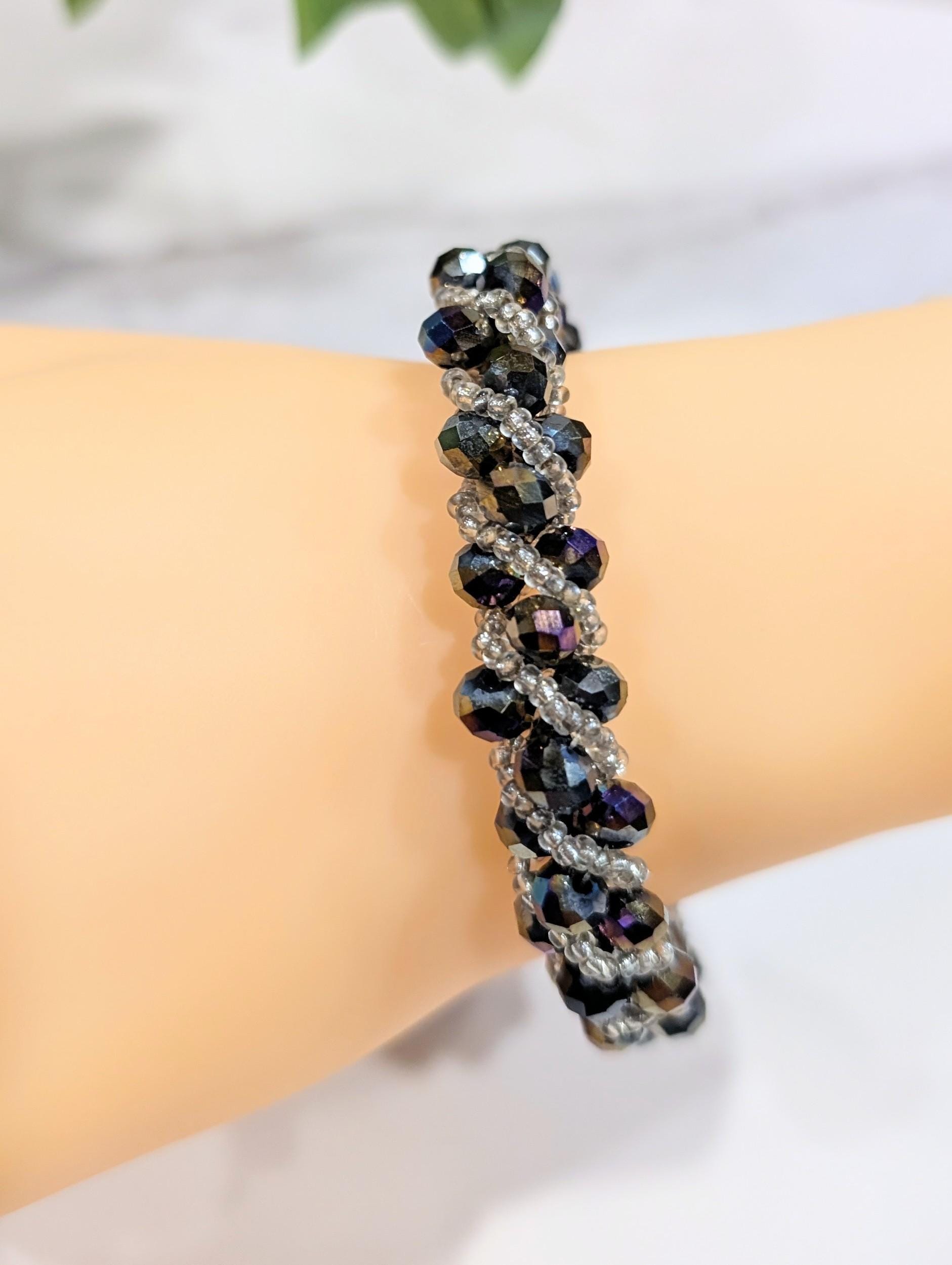 Design: Russian spiral weave with glass beads alternating for dynamic pattern.