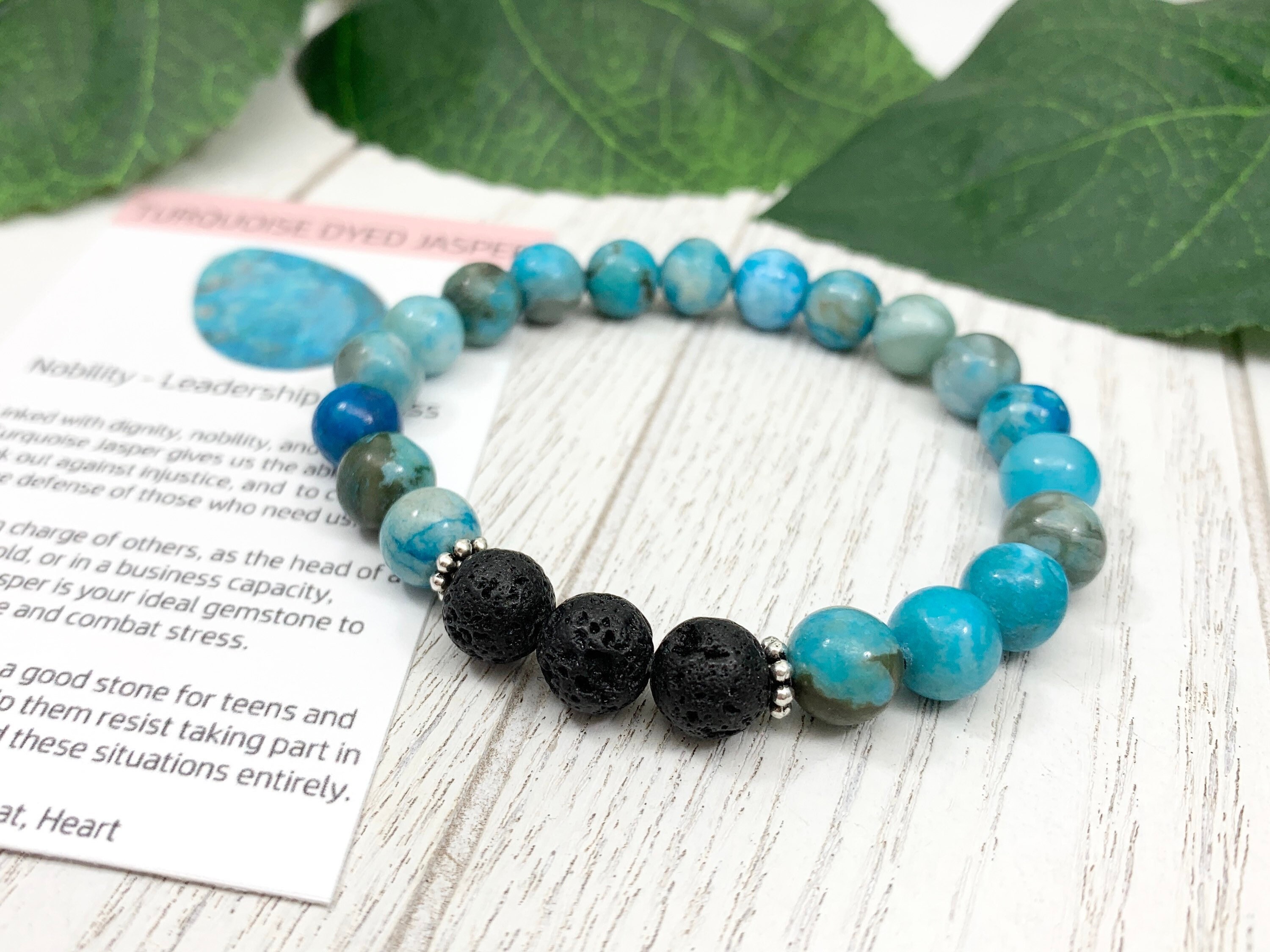 This Blue Ripple Jasper & Lava Diffuser Bracelet combines soothing blue-green jasper beads with porous lava stones. Your wearable ritual for relaxation, emotional balance, and all-day aromatherapy. Hand-strung on durable elastic for effortless comfort.