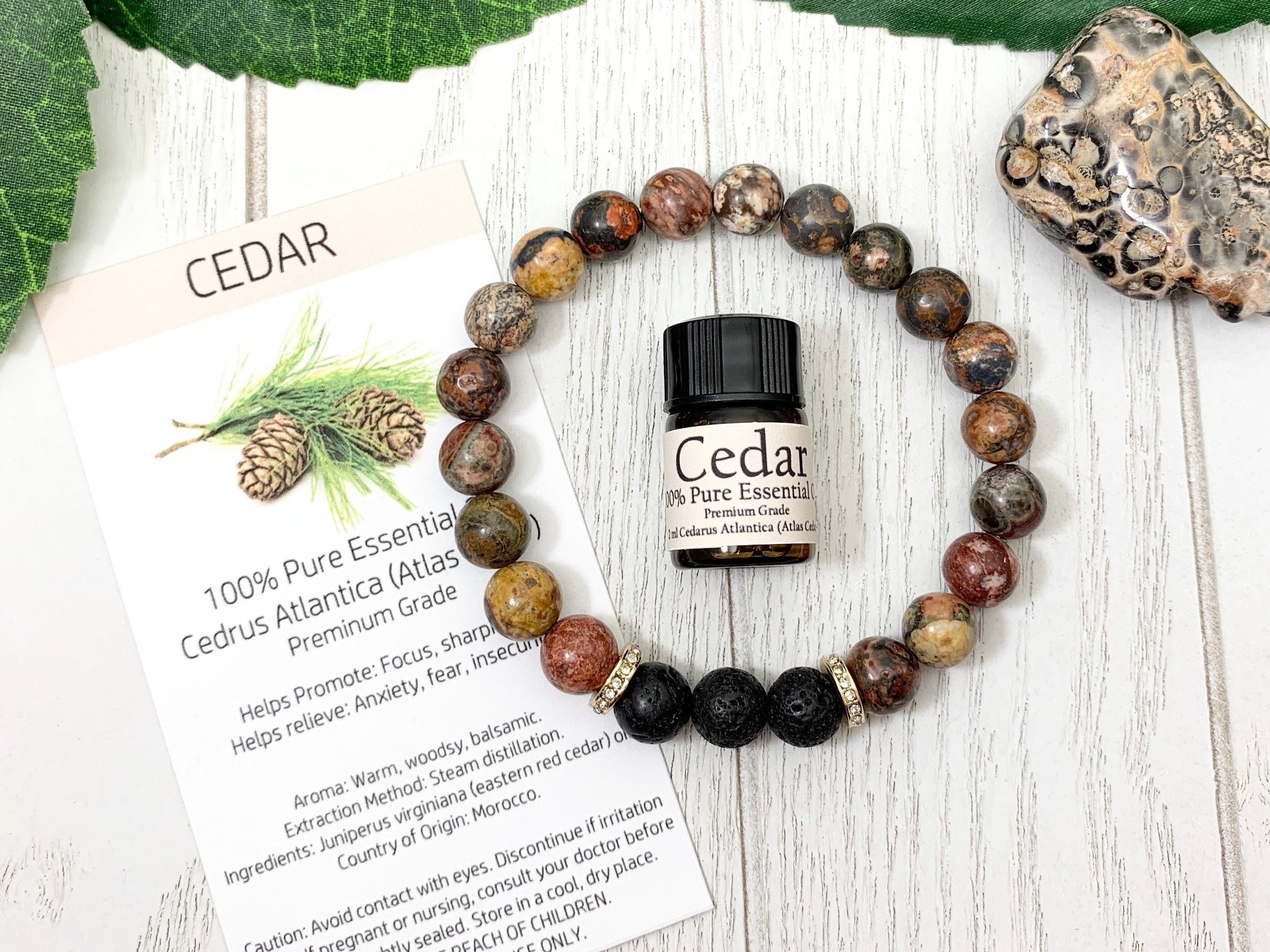 Strength & Protection: Leopardskin jasper is celebrated for grounding and shielding energy, while lava holds essential oils for 4β6 hours of fierce, earthy scent.