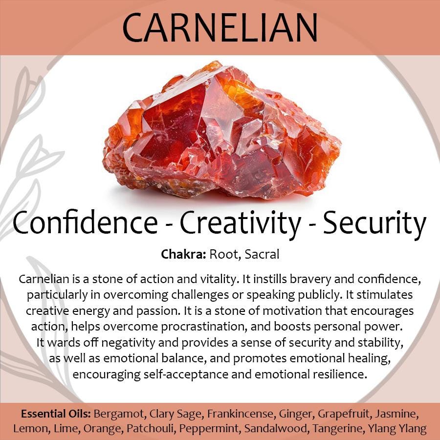 Carnelian is believed to stabilize the body's energy field, offering protection and boosting self-esteem, creativity, and motivation.