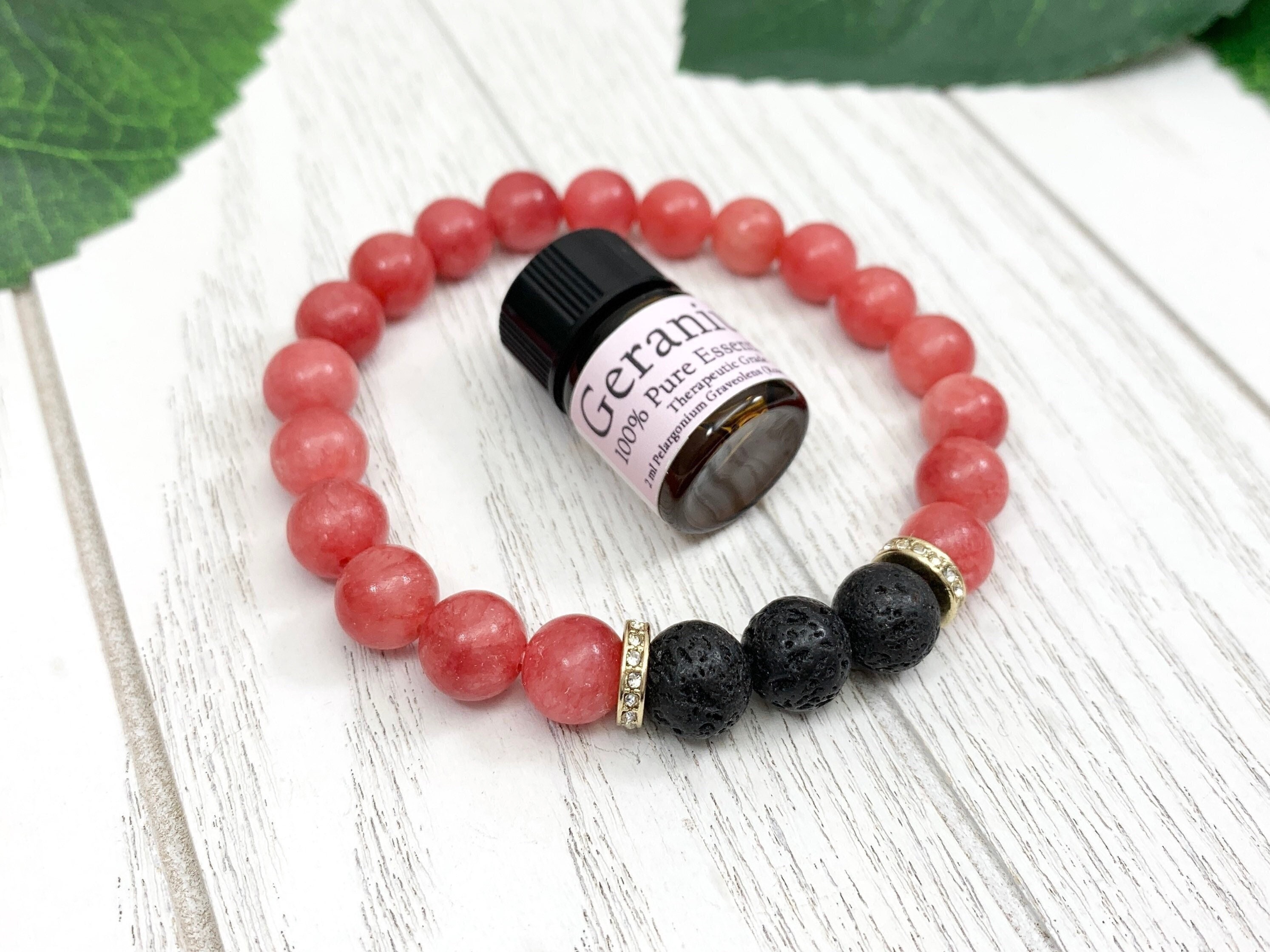 This Rhodochrosite Lava Diffuser Bracelet combines vibrant rhodochrosite beads with porous lava. Your wearable elixir for love, self-compassion, and all-day essential oil diffusion. Hand-strung in my Texas studio.