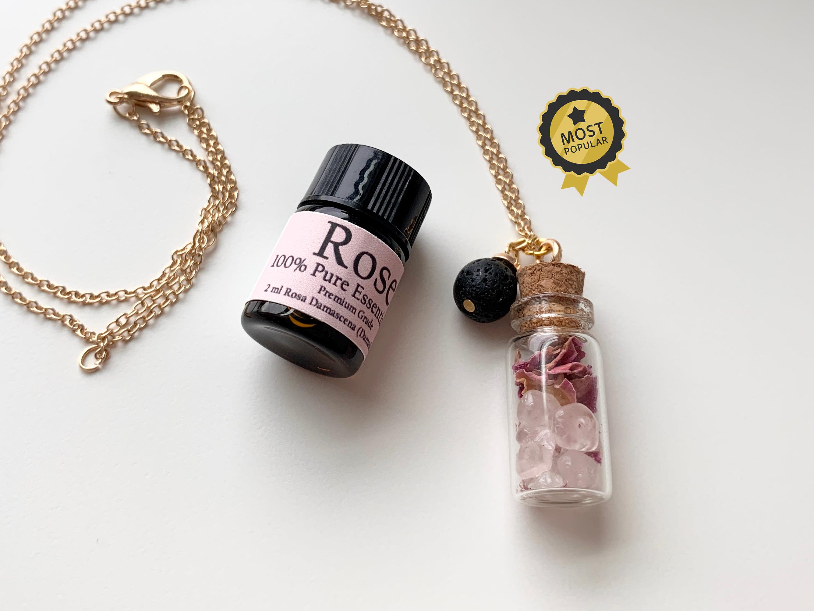 Each necklace is carefully assembled, with a securely capped vial, lava bead, and quality chain.